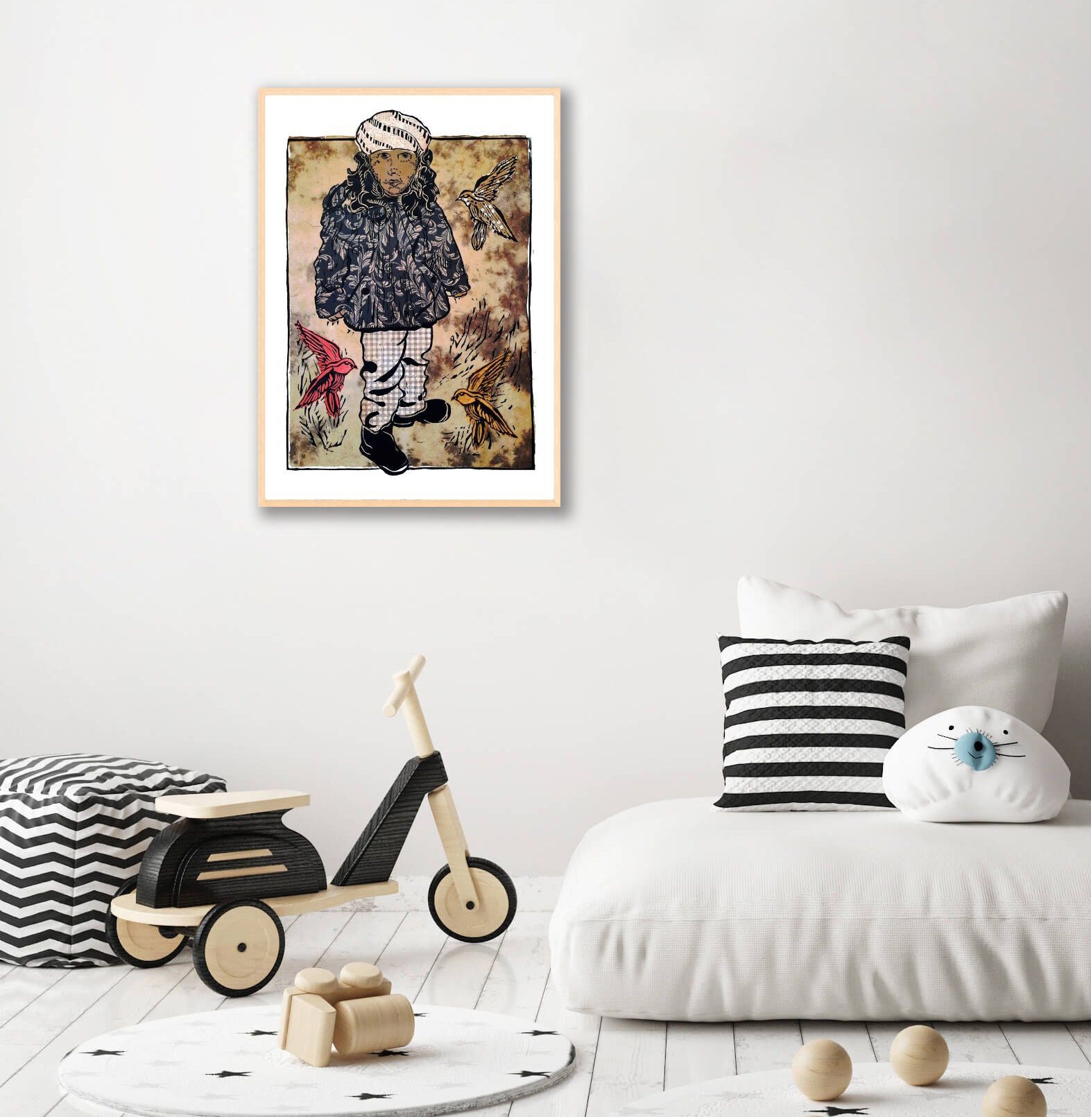 Size 26x19" with image size of 24x17". Shipped for free and tax included with all original artwork. This is an original artwork, one of a kind.